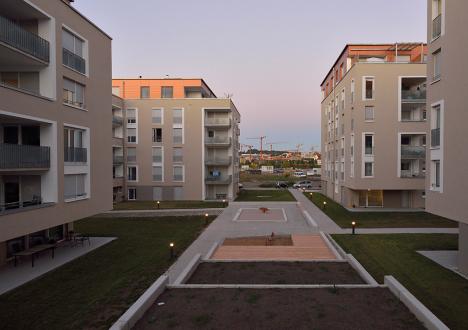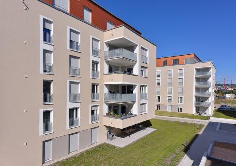 Die Bebauung des Quartiers mit 58 Eigentumswohnungen + 21 Mietwohnungen mit Tiefgarage ist durch eine offene Bebauungsstruktur geprägt. Die vier Stadtvillen, die die Quartiersecken räumlich definieren, schaffen großzügige, parkähnliche Freiräume innerhalb des Baufeldes. Sie öffnen und vernetzen sich zu den angrenzenden Quartieren. Die unterschiedliche Orientierung der einzelnen Gebäude gewährleistet eine optimale Belichtung und unterschiedliche Ausblicke. Projektleitung für Ackermann+Raff Architekten