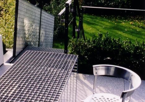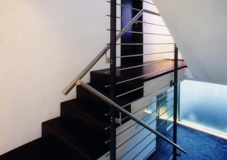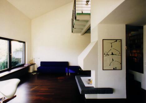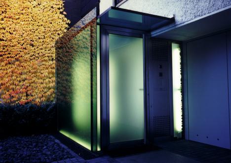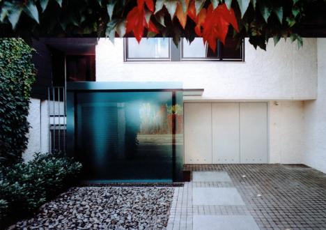 Als "Erstlingswerk" noch während des Studiums wurde ein Wohnhaus der 70er Jahre innen und außen umfassend renoviert und durch einen neuen Eingangsbereich erweitert, der als semitransparente Eingangsbox vor dem Gebäude steht und so keine sichtbaren Profile den Raumeindruck stören. Als Pendant im Inneren beleuchtet das Glas der Galerie – auf den alten Balken die Bibliothek.